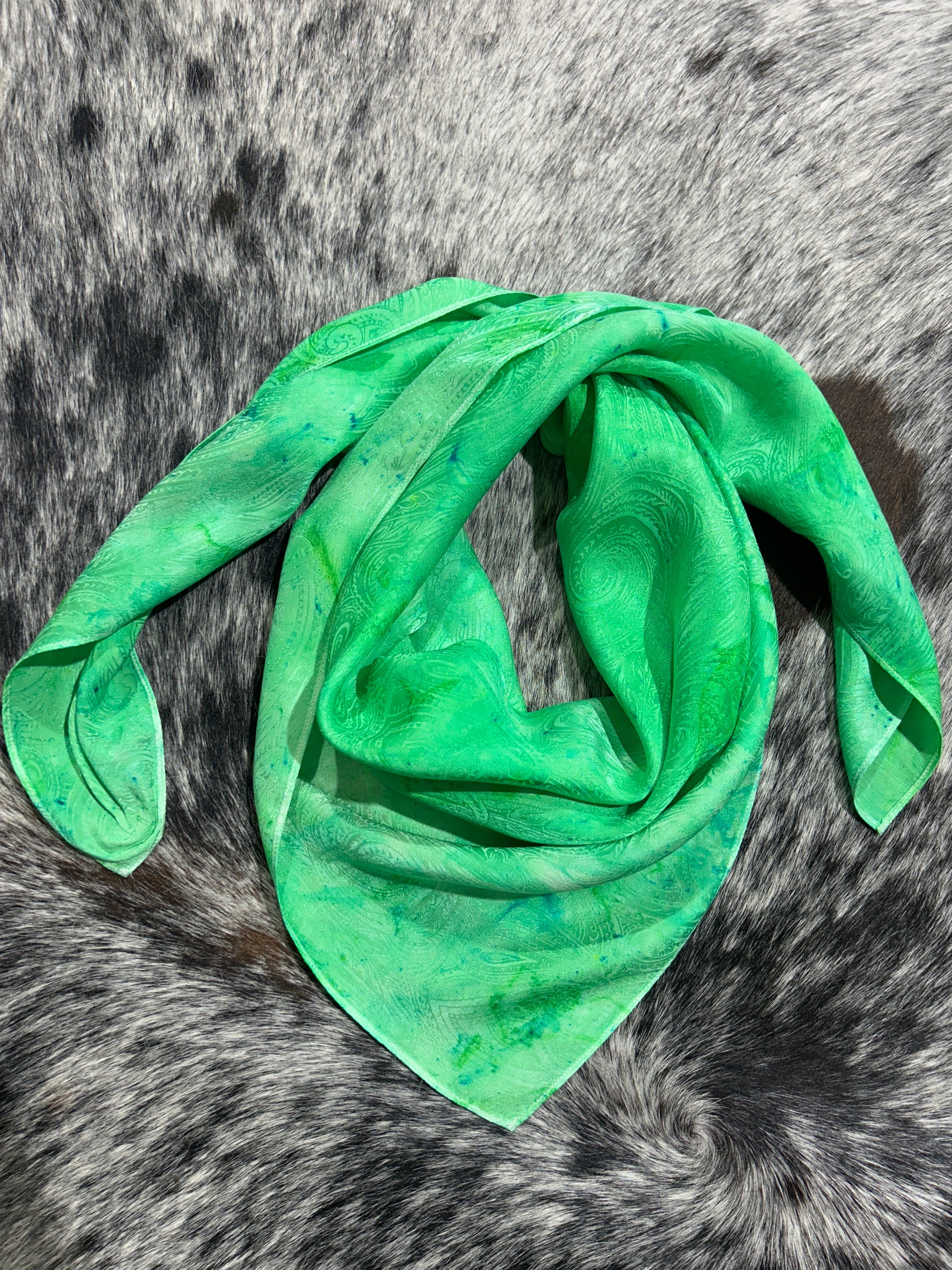 Our "Luck of the Irish" wild rag is crafted from the finest 100% jacquard silk and measures 36" square. Its lightweight and breathable fabric is designed for all-day comfort whether you’re working on the ranch or out on the town. The highly durable machine-stitched hems paired with the 19 weight silk ensure that your wild rag will withstand serious use, while still maintaining excellent drape, breathability, and comfort.